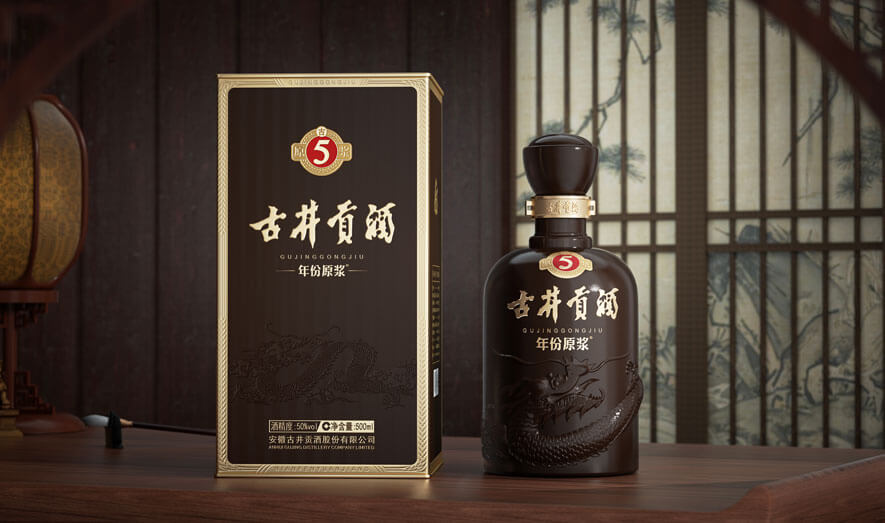古井集團(tuán)為適應(yīng)市場(chǎng)變化升級(jí)古5產(chǎn)品,在保留消費(fèi)者印象感基礎(chǔ)上賦予現(xiàn)代感。升級(jí)重點(diǎn)為瓶身設(shè)計(jì)與文化內(nèi)涵創(chuàng)新,瓶身比例優(yōu)化呈修長(zhǎng)輪廓貼合現(xiàn)代審美;引入《周易》“云從龍”概念融合龍?jiān)圃靥嵘幕滋N(yùn);工藝采用金卡浮雕擊凸技術(shù),增強(qiáng)視覺層次感,讓產(chǎn)品在貨架更顯眼。