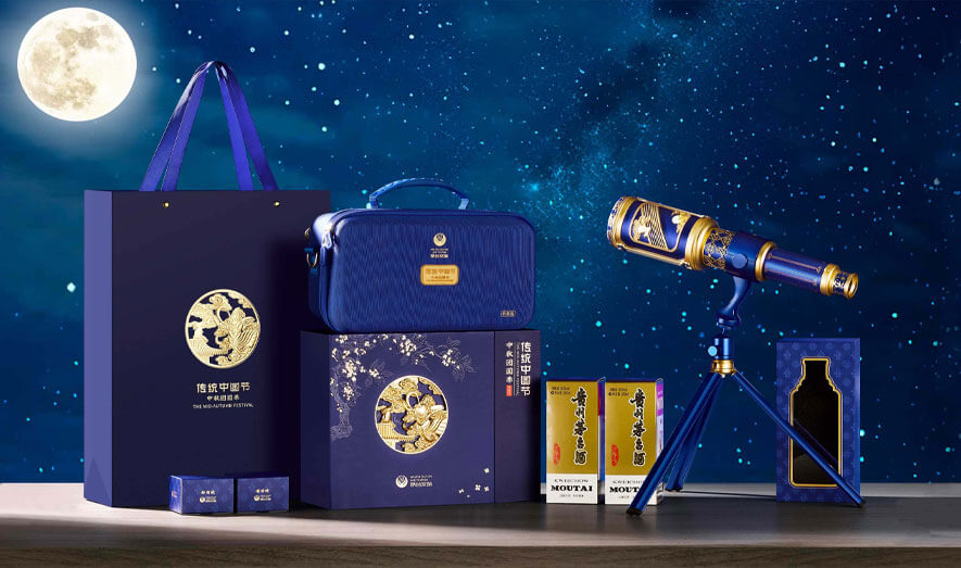 此次與茅臺(tái)文旅攜手打造的這款中秋禮盒,將望遠(yuǎn)鏡納入其中,藍(lán)金配色,顯茅臺(tái)文化典雅,鏡筒融傳統(tǒng)與茅臺(tái)元素。禮盒插畫鏤空繪飛天滿月,寓團(tuán)圓,以深邃視野融合中秋與茅臺(tái)文化,致敬追夢(mèng)人。